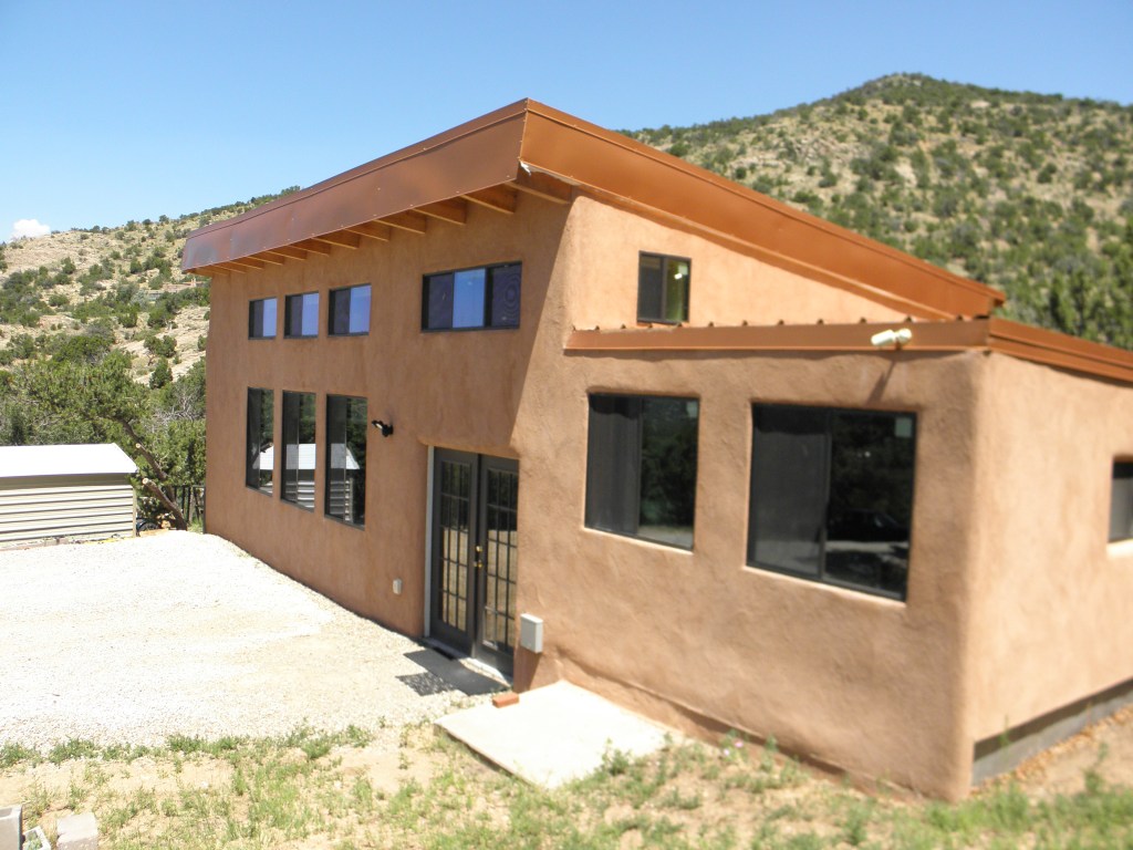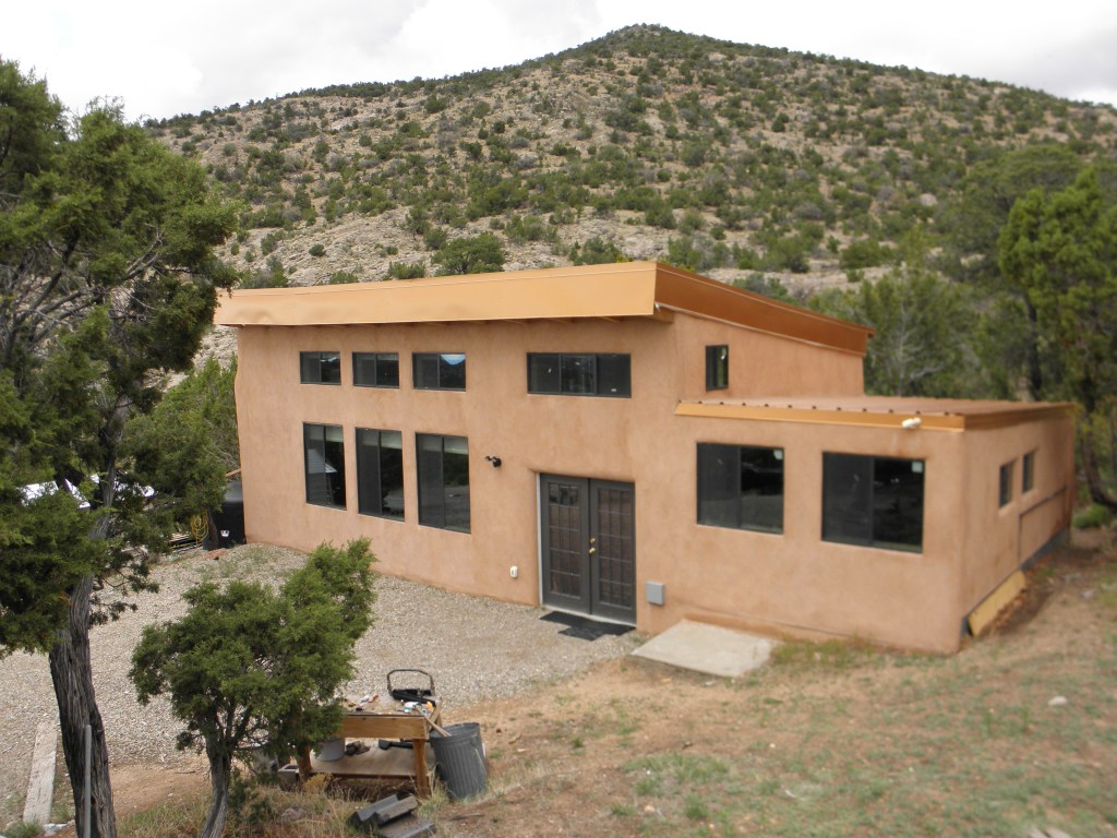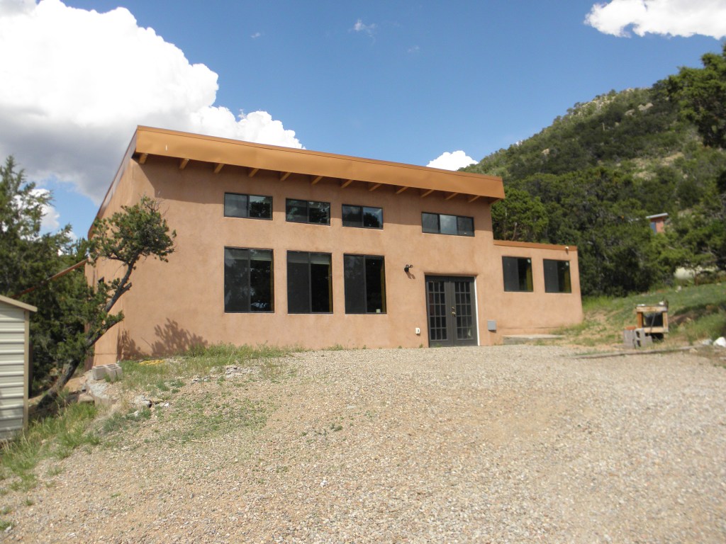 Prior to building the studio facility we installed a large solar electric system. This system consists of 28 modules each at 335 watts. It is mounted on four 6 inch in diameter steel pipes. The system produces all of the power needed for the studio and for all of the buildings on the 20 acre compound. There are very few recording studios in the US that are 100% solar powered which is something we are proud to have accomplished.